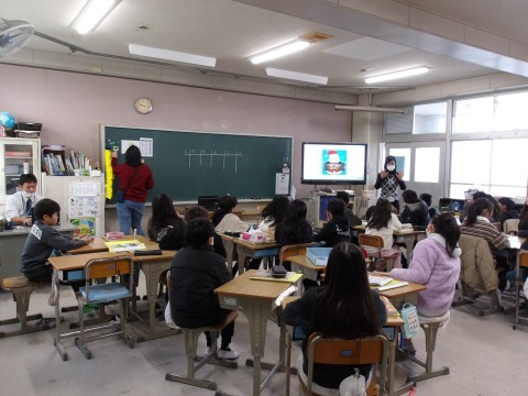 外国語はNSの先生が考えてくれたクリスマスクイズをしていました。班対抗のようです。頑張ってください!