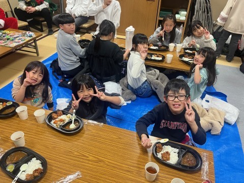 日曜日に校区の上集会所で,かみひこうきこども食堂が開店しました。