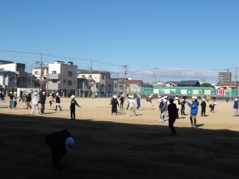 今日からなわとび月間が始まりました。体育委員会の児童がCDを用意してくれて,音楽に合わせて練習をしていました。
