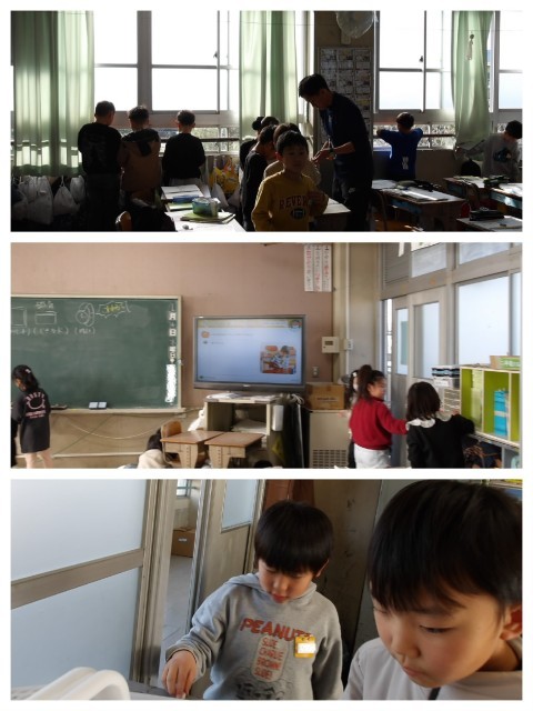 理科は磁石につくものを調べていました。教室へ入るとわたしの名札も磁石がつくか確認してきて「あ,この銀のところつく」と磁石につくもののヒントを見つけていました。