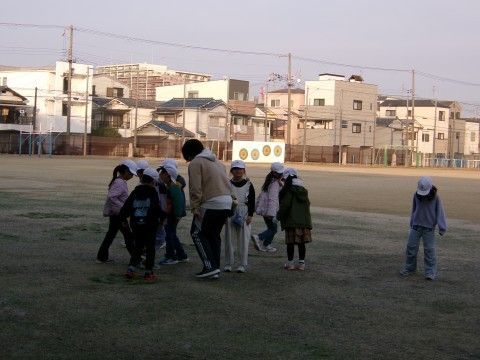 それに気づいた1年生が担任の先生と一緒に遊んでいました。