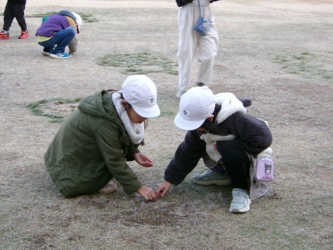 今朝は冷え込みがきつく,芝生も凍っていました。