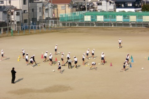 体育はサッカーゲームです。まずボール慣れからしていました。