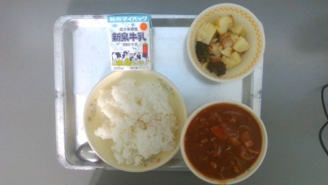 今日の給食は、ぎゅうにゅう、ごはん、ハヤシライス、