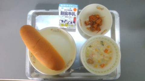 今日の給食は、ぎゅうにゅう、コッペパン、