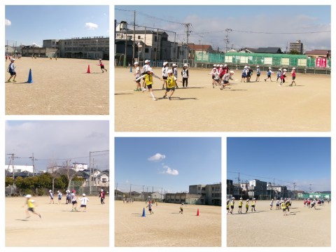 体育はリレー遊びをしていました。初めは練習です。コースを確認してバトンを渡す練習などをしていました。