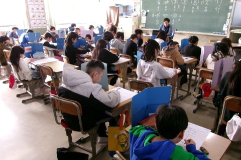 音楽は「地域につたわる音楽でつながろう」の学習をしていました。祭り囃子を聴きながら楽器の音色を楽しんでいました。