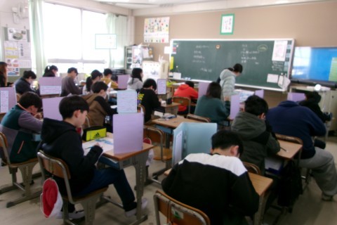 国語は習字です。今日は「旅立ちの時」を書いていました。まさにこの時期の子どもたちにぴったりの課題ですね。