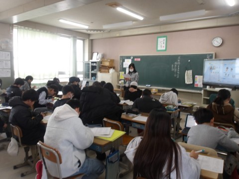 外国語は「My Dream」の学習です。中学校で入りたい部活やがんばりたい学習を英語で確認していました。