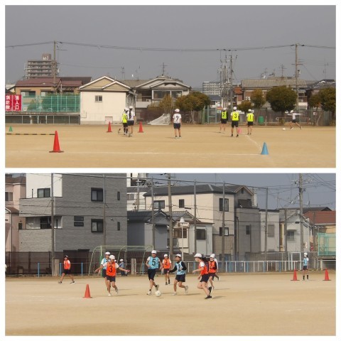 体育はサッカーです。チームでうまくルールをいかして得点につなげていました。
