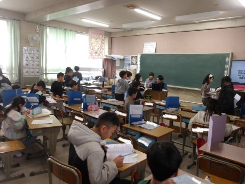 算数はテストをしていました。四角をつかった式です。難しい問題も最後まで頑張っていました。