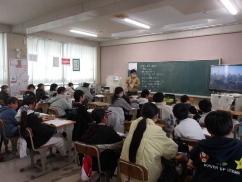 理科は発電の学習です。電気の使われ方を資料を見ながら確認していました。
