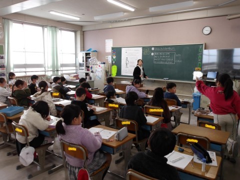 算数はどんな式になるか考えようをめあてに学習していました。数学的思考を働かせて考えていました。
