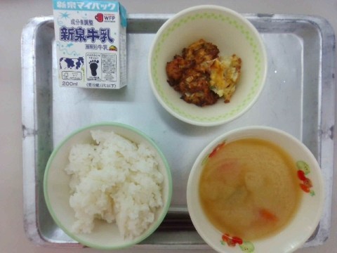 今日の給食は、ごはん、ぎゅうにゅう、