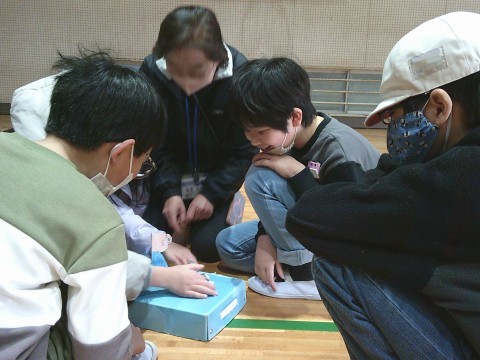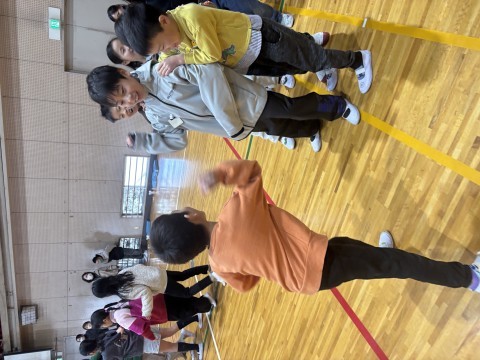 今週の朝の会は、3年生との交流会をしました。前半は3年生がとってもかわいい紙相撲を作ってきてくれ、それでトントン相撲をしました。紙相撲がなかなか自分の思い通りに進まなかったり、同じようにトントンしても紙相撲によって全然違う動きをしたりと、やってみると案外難しく、しかしそれが面白さになりとても楽しい時間となりました。後半はじゃんけん列車をしました。あちらこちらで元気よくじゃんけんをしており、みんな一戦ごとに喜んだり悔しがったりと、一体となっていました。3年生のみなさん,素敵な時間をありがとうございました。