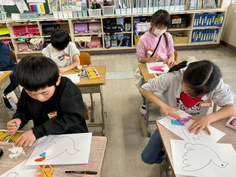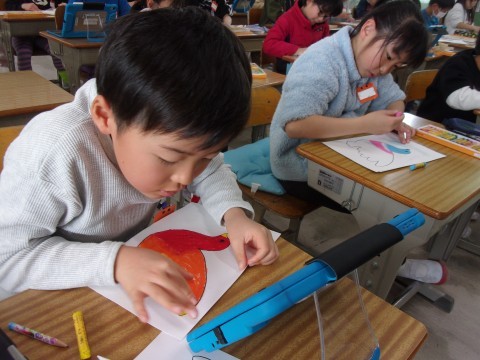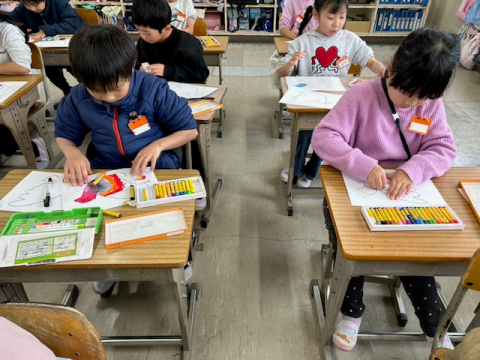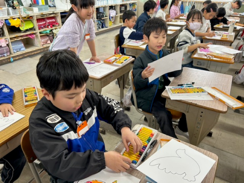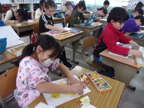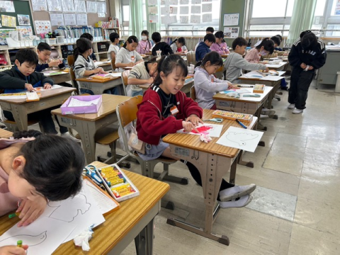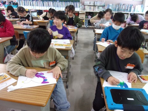 2月26日(木) 図工 2年生 公開日 2026/02/26 更新日 2026/02/26 2年 図工では鳥の絵に色を塗りました。境目を指でこすってぼかすなど、工夫して真剣に色を塗っていました。2年生みんなで心をこめて制作した鳥の絵は、卒業式の日に6年生の教室に飾られる予定です。6年生の卒業式を華やかに彩ってくれるのを楽しみにしています。 +6