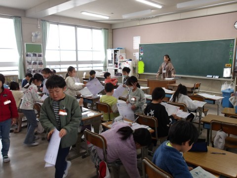 国語はテスト返しをしていました。ちょうど教室に入ると「両面とも100点だったよ!」と報告してくれる子がいました。がんばったね!