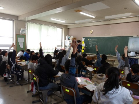 社会は森林の役割を調べていました。学んだことから自分にできる行動を生かせる人になってほしいです。