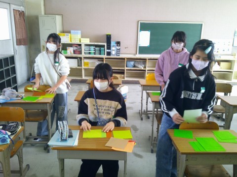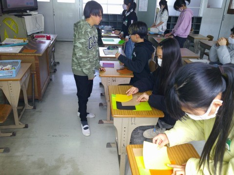 見本の図形の通りに、こうかなぁ…と試行錯誤しながら、折り紙を重ねていました。