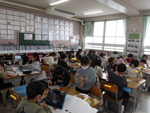 図工は作品バックをしあげていました。タブレットを参考にしたり,自分で想像したりして思い思いの作品バックにしていました。