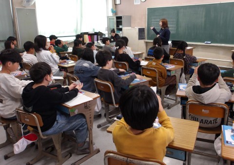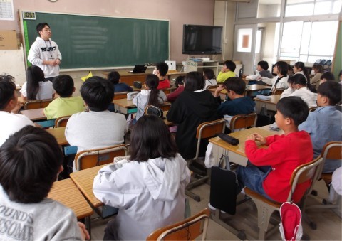 1組は算数の先生に授業での決まりを教えてもらいました。2組は掃除の当番について話を聞いている様子です。