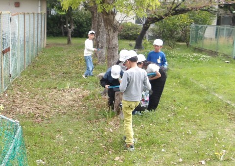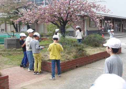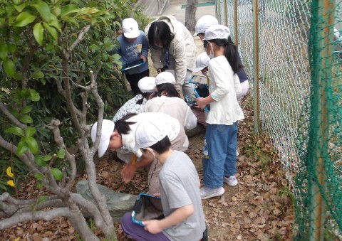 理科では春の生き物探しをしました。見つけた生き物をタブレットで写真を撮りました。