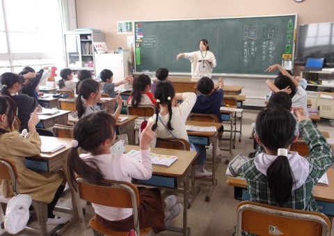算数では、かけ算のきまりを使って問題を解いています。