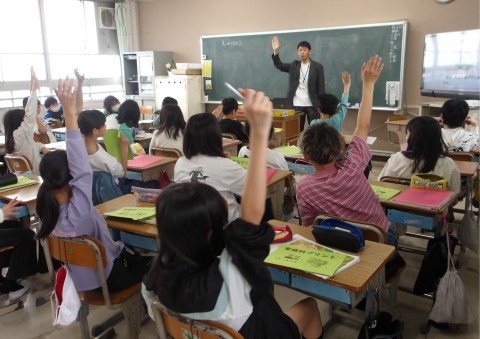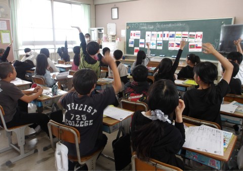 外国語では、国旗のカードを使っていろいろな国の言い方を学んでいました。