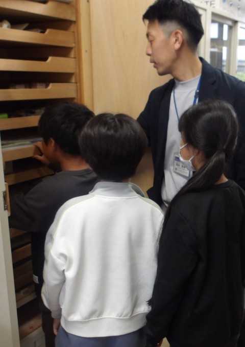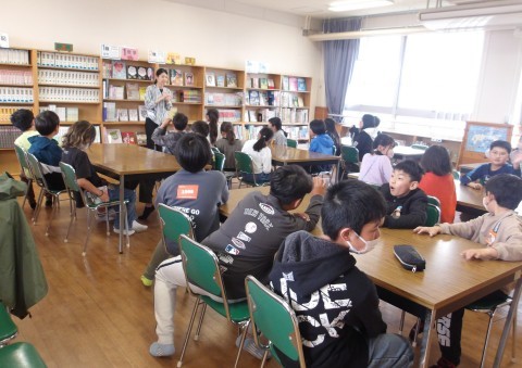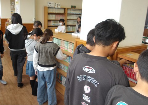 図書室では今日から貸し出しが始まりました。いろんな本を読んで自分の世界を広げてくださいね。
