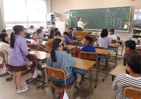 体育大会のスローガンを考えていました。スローガンに入れたい言葉として「上小」「きらきらかがやく」「力を合わせて」・・・たくさんの意見が出ていました。どんなスローガンができたのでしょう。