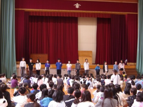 児童会会長と副会長,そして学級委員の任命を行い,その後委員長による委員会紹介も行いました。