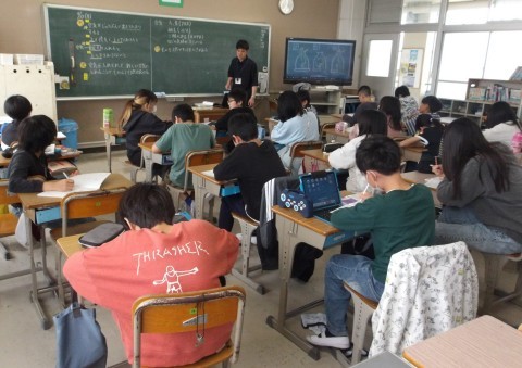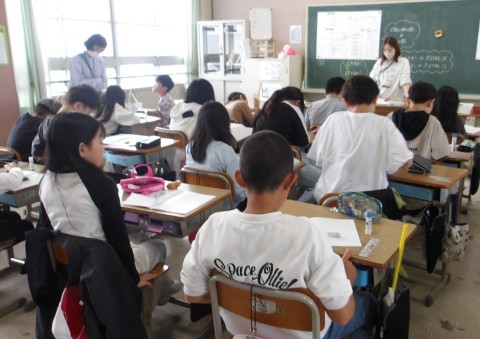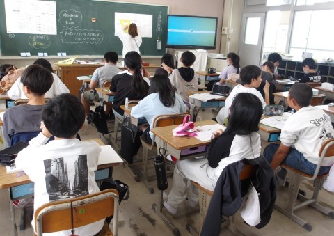 理科でまとめをしている様子と算数で線対称,点対称の図を描く練習をしている様子です。