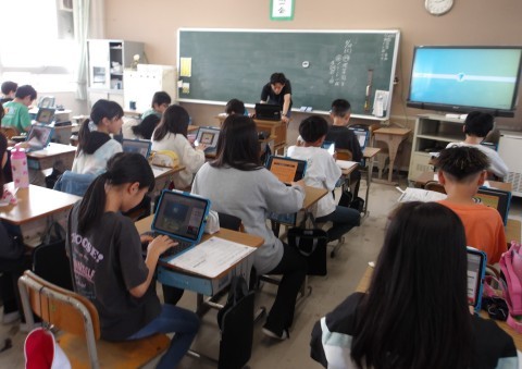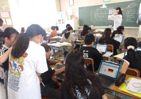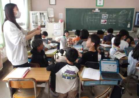 外国語では「I`m from ~」「I live in ~」を使って人物をあてるゲームをしていました。