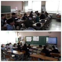 新学年になって初めての外国語の学習です。ネイティブ・スピ−カ−のジョイ先生を迎え、スライドを通しながら英会話を楽しむ様子が見られました。