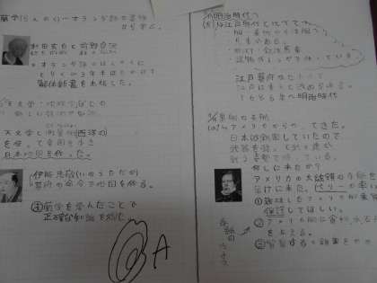 職員室前廊下に掲示されています。単に板書をきれいに写しているだけでなく、学習を振り返り自分の考えをきちんと書けています。また、「自主学習ノート」には、自分で進んで学習している様子がよく分かります。参考にしてください。上小児童の皆さん、自分だけのノートづくりを心がけましょう。そして「ノート名人」をめざしましょう。6年生のノートです。