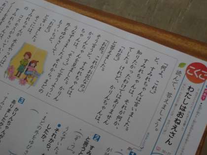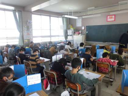 2年1組国語の授業です。テストをしていました。とても真剣にテスト問題に向き合っていました。