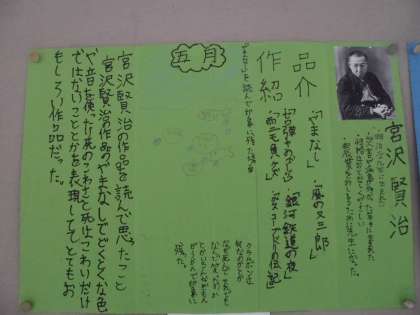 テーマは、「宮沢賢治」です。「銀河鉄道の夜」、風の又三郎」の作者として有名です。うまくまとめることができています。