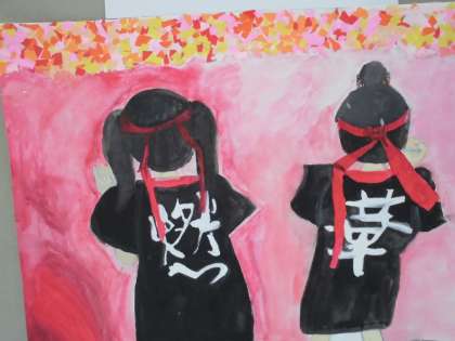 体育参観で披露した「南中ソーラン」をテーマに制作した作品です。とても力強く描けています。