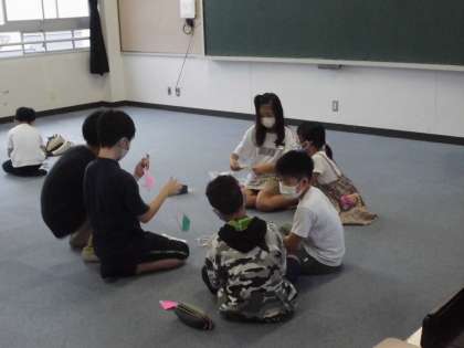 6年生と1年生がいっしょに、七夕の笹飾りをつくっていました。6年生が1年生にやさしく話をしたり、教えている様子が、とても微笑ましかったです。体の大きさの違いに、6年という時間を実感できます。短冊の願い事がかなうといいですね。
