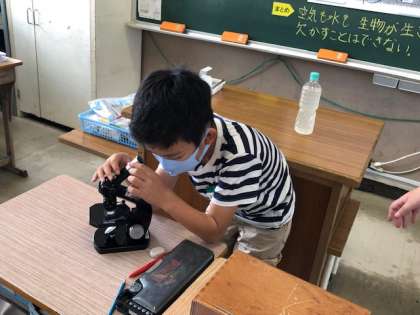 今日は,顕微鏡で「ゾウリムシ」を見ました。動画では,「気持ち悪い」と感じていた人もいましたが,顕微鏡ではっきりと見え,動き回る様子に,「すごい!」と喜んでいました。思ったよりも,かわいらしい動きをしていましたね。