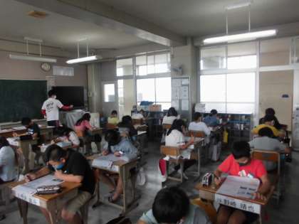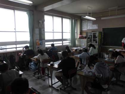 5年1組社会科の授業です。テスト問題に取り組んでいました。