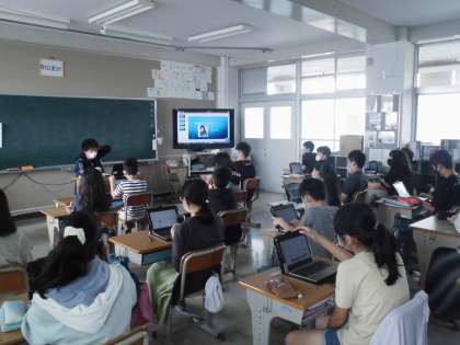 6年1組の授業です。堺の偉人について、タブレットを使い、調べたことをまとめて発表していました。自分なりにしっかりとまとめていることに感心しました。
