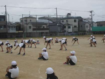 5年生の様子です。体育参観で披露する「よさこいソーラン」の練習です。日に日に上手になっています。本番が楽しみです。