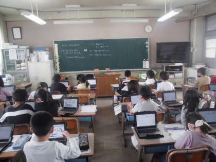 2年2組の授業です。「めざせ生きものはかせ」がテーマです。タブレットを使い、調べ学習をしていました。