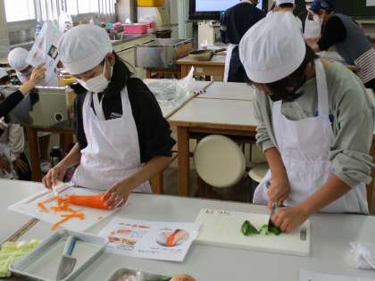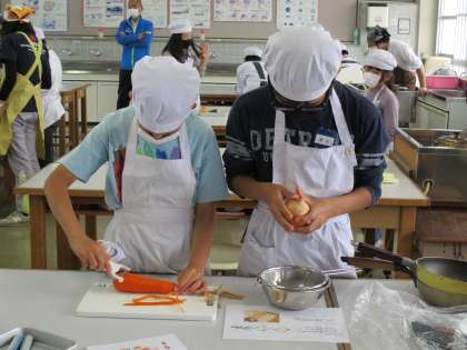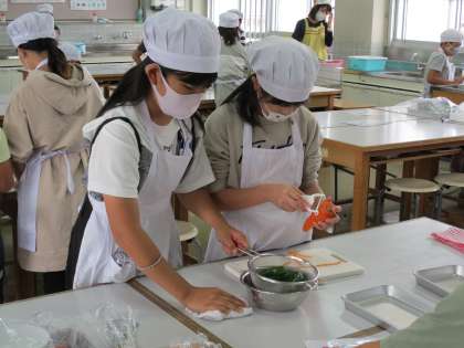 10/19(火)、5年1組において調理実習を行いました。