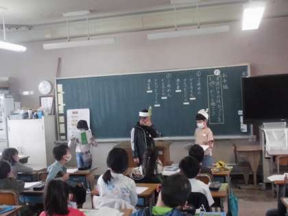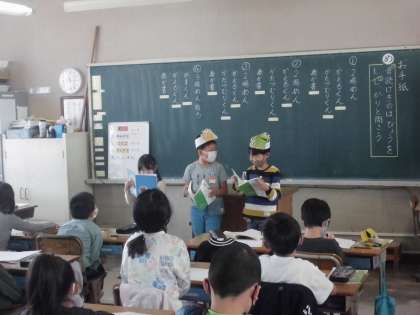 2年1組国語科の授業です。「音読劇」をしていました。それぞれの役を恥ずかしがらずにできましたか。