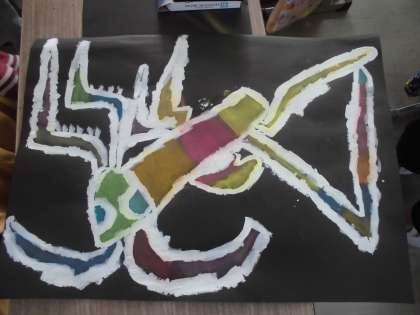 3年1組図工の授業です。おもしろい作品ばかりです。何をテーマに描いているかを考えてください。
