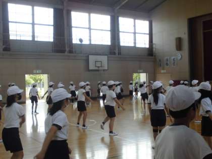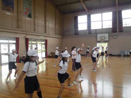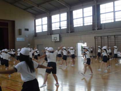 体育参観(28日)に向けての5年生の練習です。掛け声がずいぶんと大きくなってきました。いい演技をみんなで力を合わせてつくりましょう。