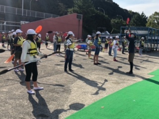 パドルの動かし方を練習しています。