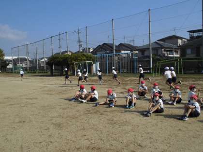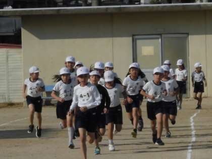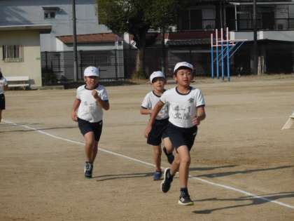 ポカポカの運動場です。4年1組体育の授業です。今日から「全校かけ足月間」が始まりました。持久走記録会に向けての練習に取り組んでいきます。しっかりとがんばってください。
